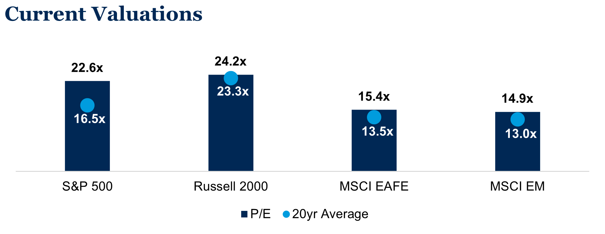 Valuations remain elevated across major indices. The S&P 500’s year-to-date gain of 17.8% leaves earnings multiples above historical averages. Positive earnings growth provides some justification, but the margin for error narrows. For long-term investors, being mindful of current valuations and thoughtfully allocating portfolios may help attain investment goals.